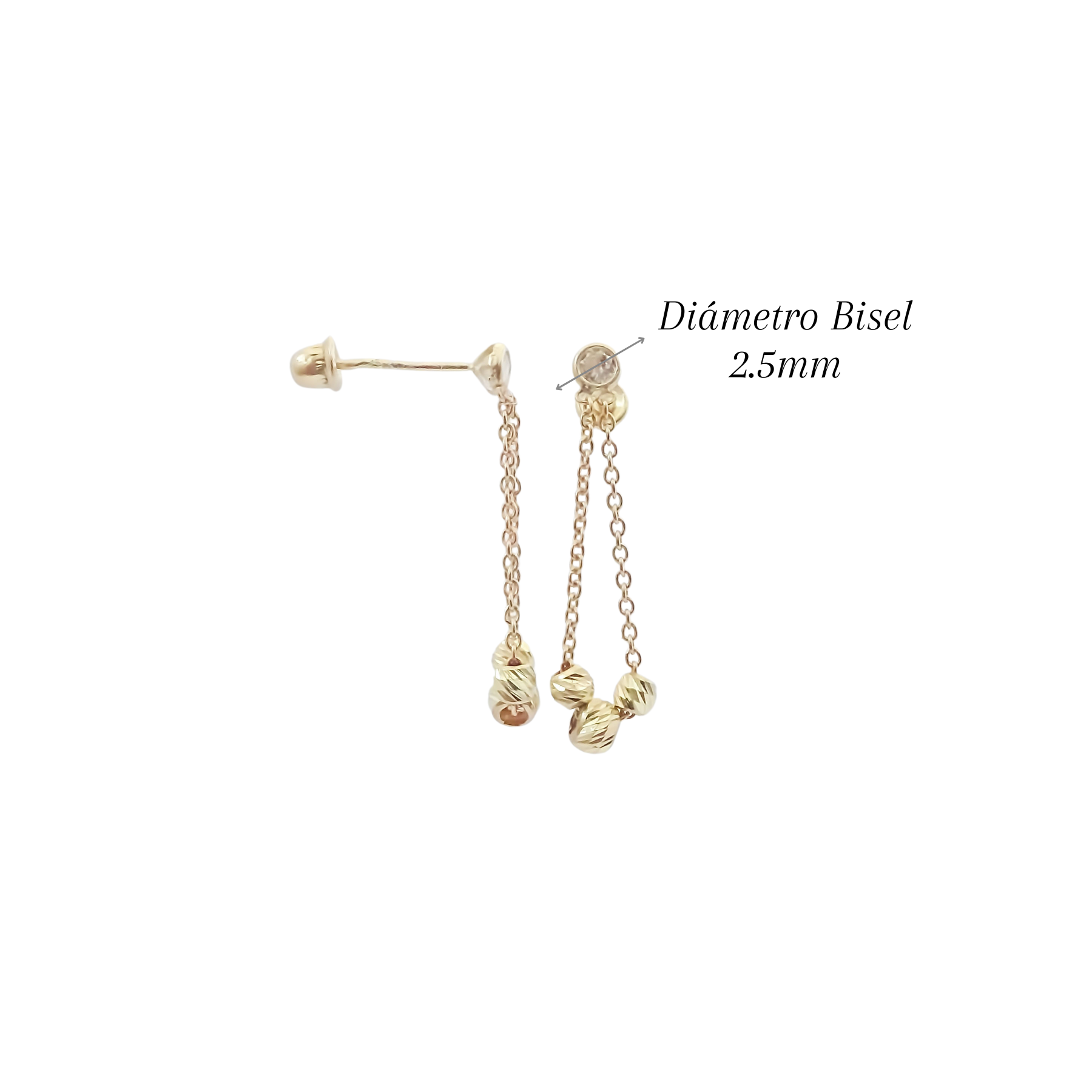 Amor Eterno - Aretes Colgantes Bisel Bolitas / Oro 10k