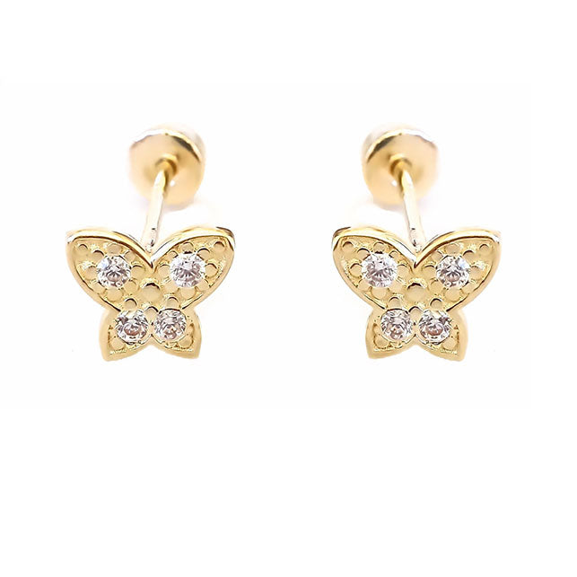 Amor Eterno - Aretes Mariposa Mini Diamantes / Oro 10k