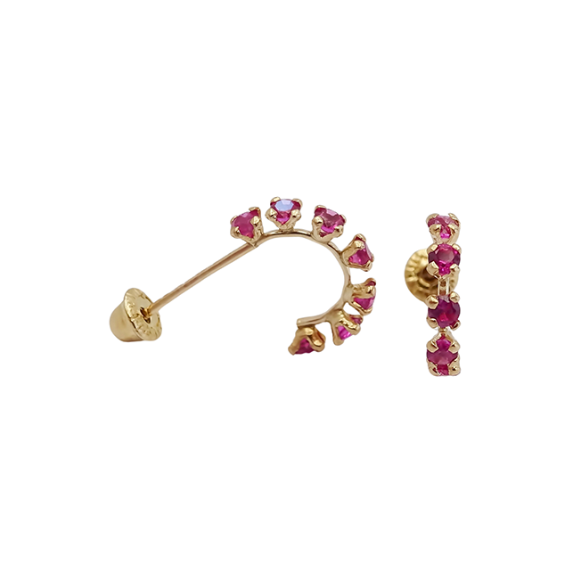 Amor Eterno - Broqueles Media Arracada / Aretes / Oro 10k / Fucsia